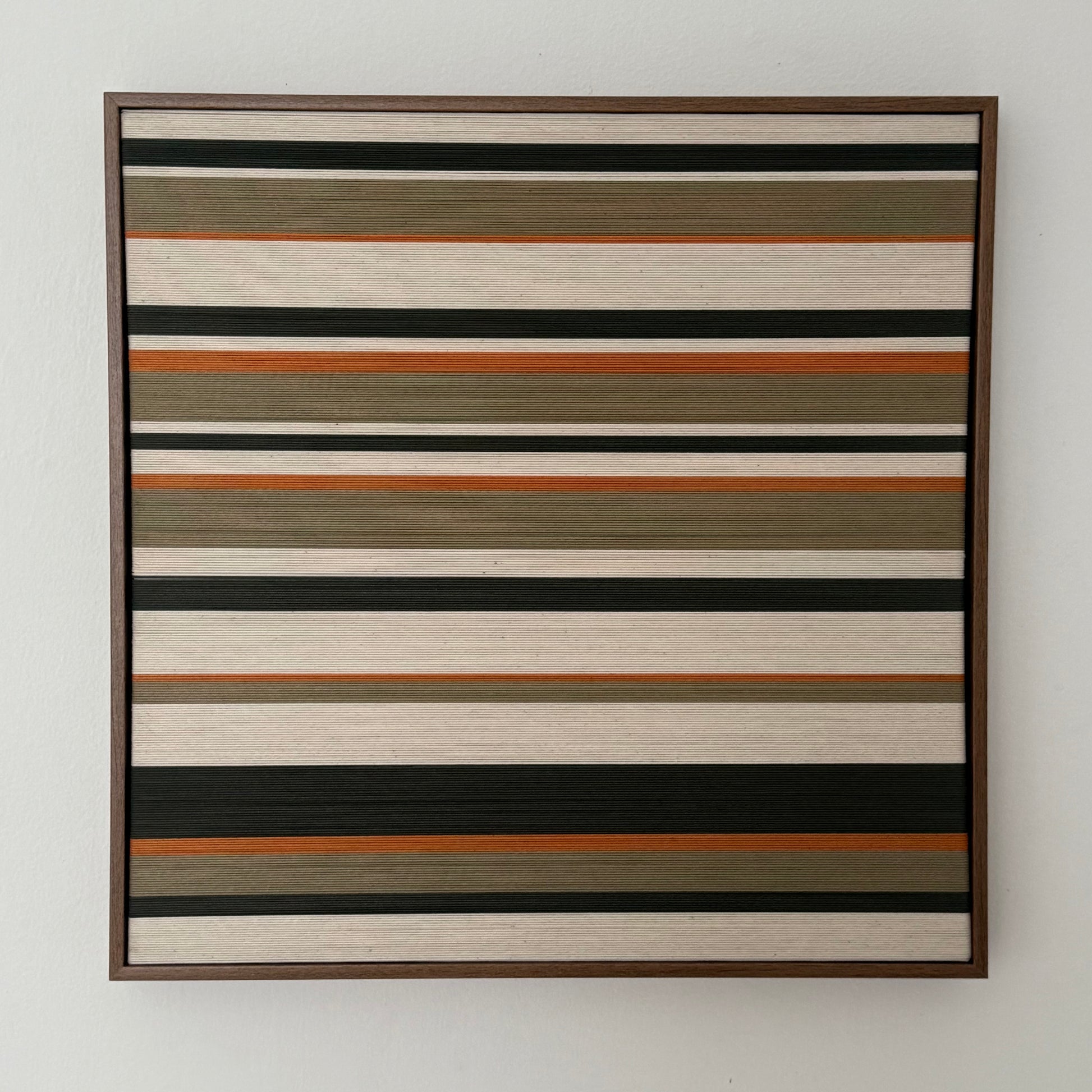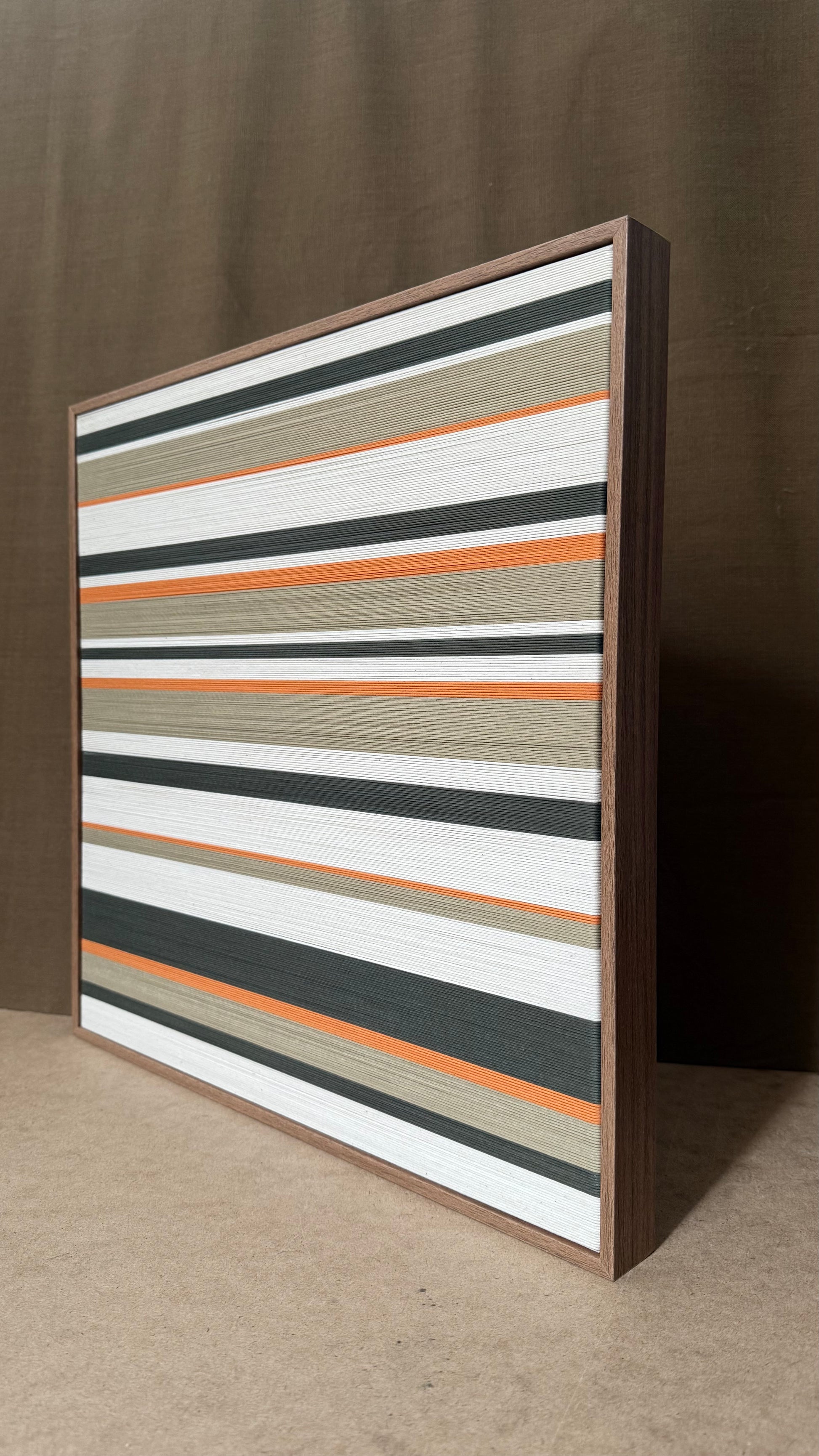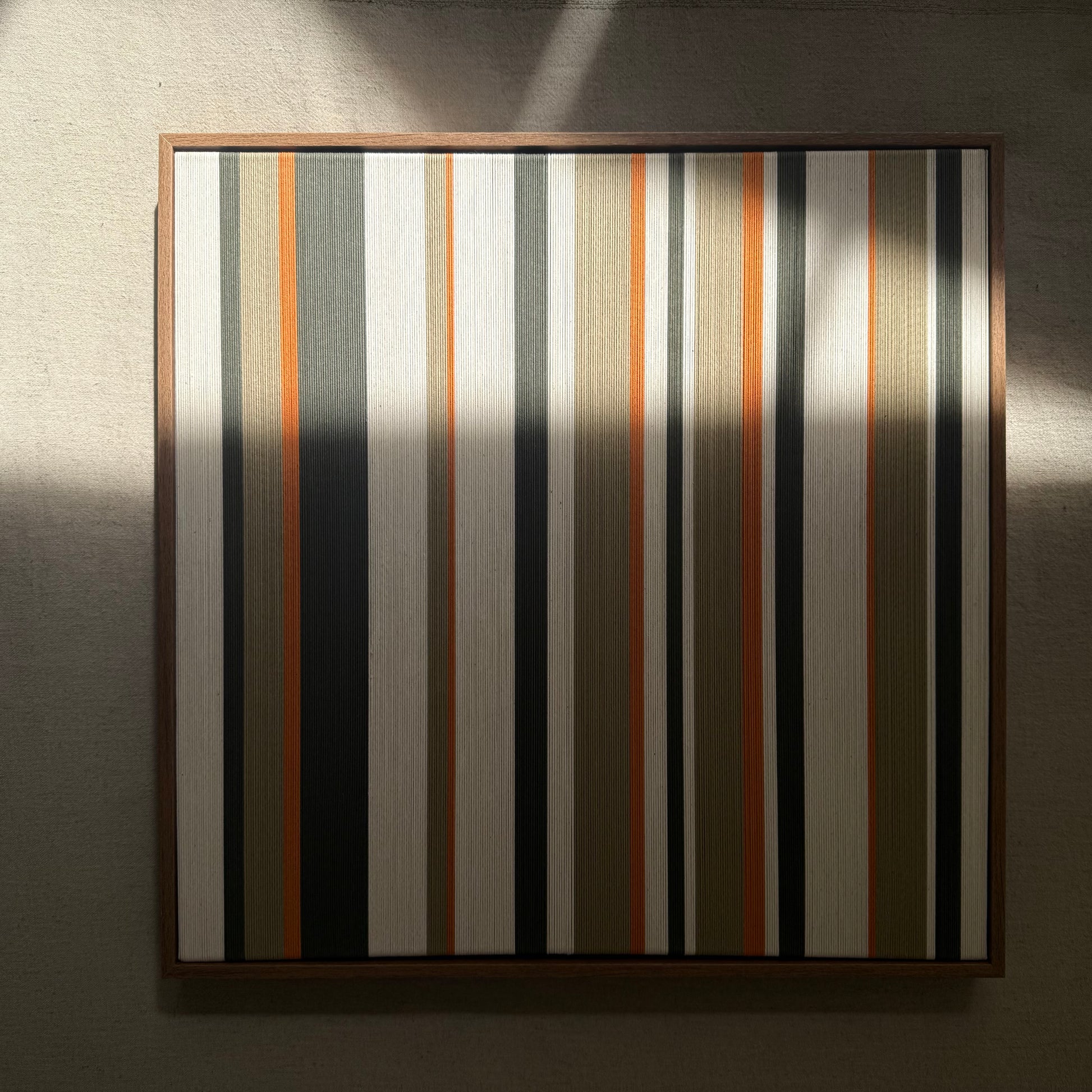 A coleção Entre Linhas é um encontro entre a tradição artesanal e o design contemporâneo. Cada peça é criada manualmente com fios de algodão e finalizadas com moldurada em madeira, transformando a geometria em poesia visual.