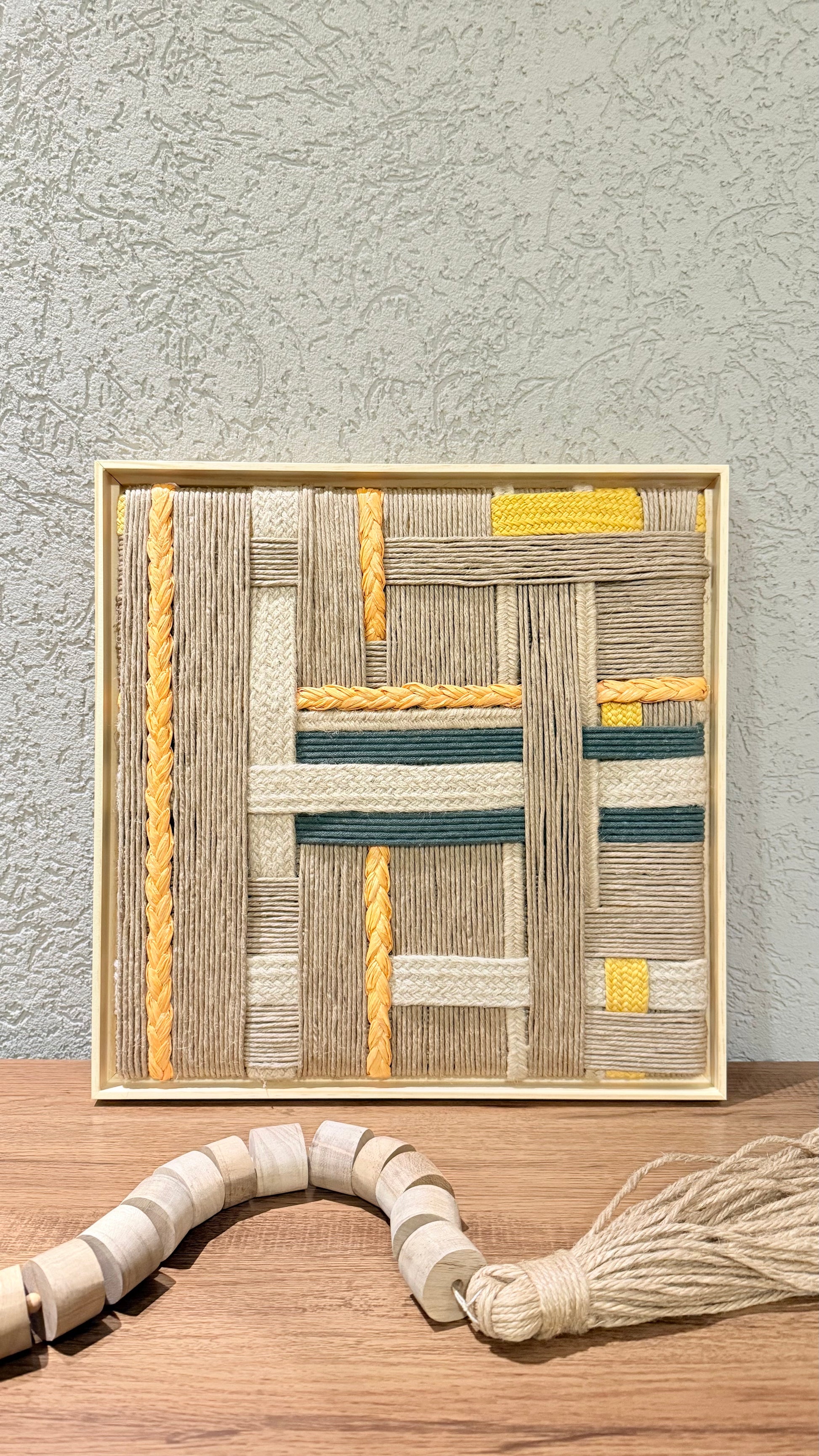 • Materiais: fios de sisal e algodão, moldura em madeira